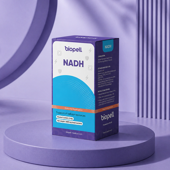 NADH бере участь у мітохондріальному утворенні клітинної енергії та підтримує природні процеси енергетичного обміну.